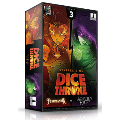 Dice Throne von Nate Chatellier und Manny Trembley ist ein schnelles Spiel für 2 bis 6 Spieler, bei dem ihr mithilfe von Würfeln und dem taktischen Einsatz eurer Karten mit euren Charakteren gegeneinander antretet: 1 gegen 1, 2 gegen 2, 3 gegen 3 oder jeder gegen jeden.