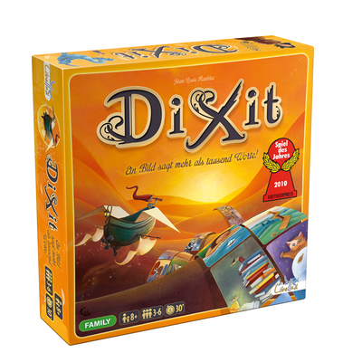 Dixit ist ein poetisches und innovatives Spiel, dessen sofortiger Erfolg durch eine Reihe von begehrten Preisen auf der ganzen Welt bestätigt wurde. Dixit ist ein einfaches Spiel, das sowohl von Kindern als auch von Erwachsenen gespielt werden kann. In jeder Runde wählt ein anderer Erzähler eine der Karten, die er in der Hand hält, und gibt dazu einen Hinweis – ein Wort, einen Satz, eine Zeile eines Gedichts oder eines Liedes. Daraufhin wählen die Mitspieler eine eigene Karte aus. Alle Karten werden gemischt und aufgedeckt, und die Mitspieler versuchen zu erraten, welche die Karte des Erzählers ist.