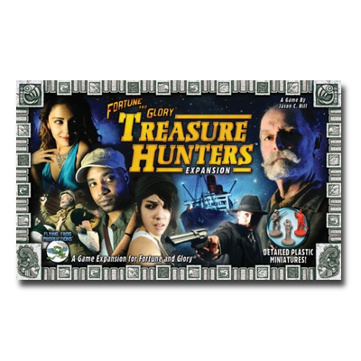 Fortune and Glory: Treasure Hunters, the second expansion for Fortune and Glory: The Cliffhanger Game, adds tons of new cards, a new personal mission deck giving heroes extra bonus objectives, two new villains to fight, and four new heroes to play, including Grant Jackson, a rough and tumble soldier of fortune, Nigel Harrington, the big game hunter, and Angel Espinoza, the daring mechanic who’s ready to make her mark on the world! Adventure awaits as these new treasure hunters set out to find fortune and glory!