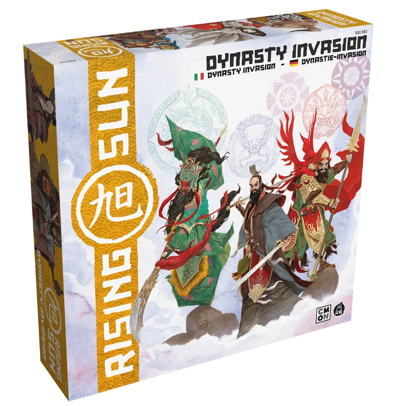 Die Dynastie-Klans, die über das Meer segeln, sind Fremde im Land der aufgehenden Sonne. Aber mit den sieben Glücksgöttern an ihrer Seite sind sie entschlossen, das Land zu regieren. Die Erweiterung Dynastie Invasion führt zwei neue Klans in Rising Sun ein, mit welchen die Spieleranzahl auf 6 Spieler erhöht werden kann. Sowohl der Sonnen-Klan als auch der Mond-Klan besitzen ihre eigenen einzigartigen Fähigkeiten. Darüber hinaus setzen beide Klans nicht die üblichen Monster ein, sondern vertrauen auf ihre Götter. Eben jene bringen ungeahnte Wendungen ins Spiel. Mit detailreichen Miniaturen und einem neuen Set Karten ermöglicht euch Dynastie Invasion weitere Optionen und Strategien für euch und euer Spiel.