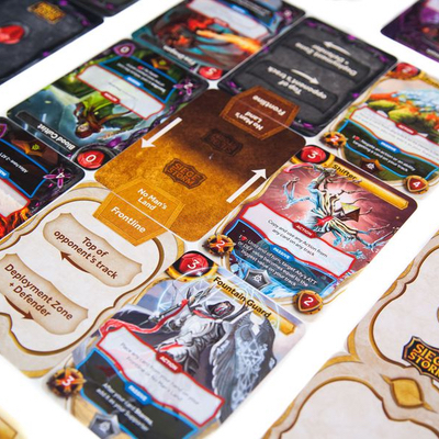 Siege Storm is a deck building game. You have cards, your enemy has cards. You both cast some creatures and spells, then one of you wins.