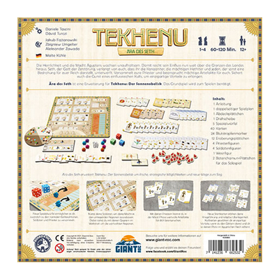 Tekhenu: Ära des Seth fügt dem Spiel neue Interaktionsebenen und neue Optionen hinzu. Ein neues Spielbrett eröffnet die Möglichkeiten benachbarte Länder zu erobern, um Vorteile im Spiel zu erhalten, sowie neue Chancen zu punkten. Neue Würfel ermöglichen es, Soldaten zu sammeln und Priester zu akquirieren. Die Eroberung hat jedoch ihren Preis, denn mit mehr Kämpfen wird das Ausbalancieren der eigenen Taten komplizierter als zuvor.
