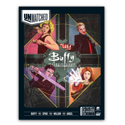 Unmatched: Buffy the Vampire Slayer features four heroes. Buffy will hit you with Mr. Pointy or summon her Slayer’s strength for a cartwheel kick. When it’s time for backup, she’ll take her pick between insightful Giles or reliable Xander. Spike, a relentless hunter, seeks the shadows and calls on Drusilla’s Sight to let him know just where and when to strike. Willow, a peerless witch, dabbles in black magic and risks her darker self, potent but dangerous. At times, only Tara can bring her back from the brink of the abyss. Angel, once the Scourge of Europe, is cursed with a soul, conflicted by his victories and taking solace in his losses. Faith is there to make sure things stay „Five by Five“.